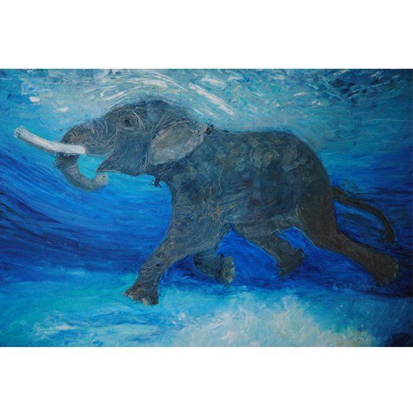 gezeigt werden großformatige Ölgemälde mit Unterwasserszenen von Diana Diesing